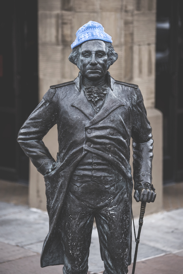 Winter clothing is allowed to be put on the statues by individuals or organizations from mid-November through mid-March.
